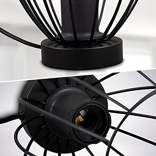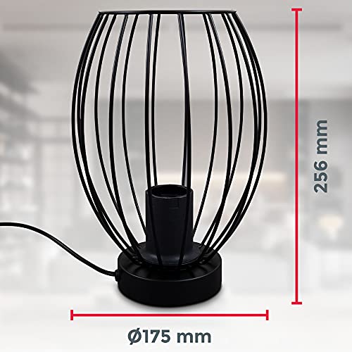 B.K.Licht, Lampada da comodino con paralume in filo metallico, attacco per lampadina E27 non inclusa, lampada da tavolo vintage, altezza 25.6cm, interruttore sul cavo, metallo nero