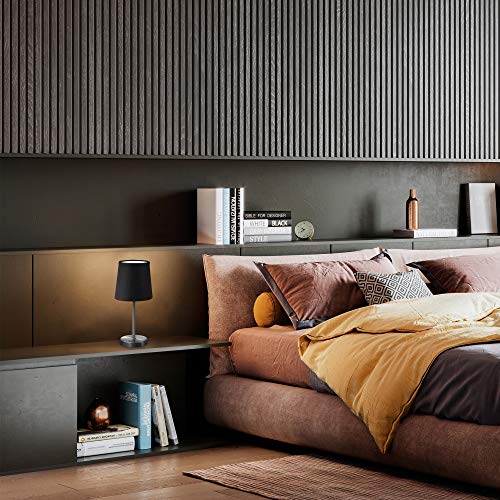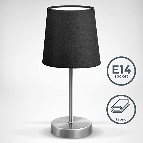 B.K.Licht Lampada da comodino, Lampada da tavolo con paralume in tessuto nero, adatta per lampadina E14 non inclusa max 25W, altezza 30.8cm, abat-jour per camera con interruttore sul filo, IP20, 230V