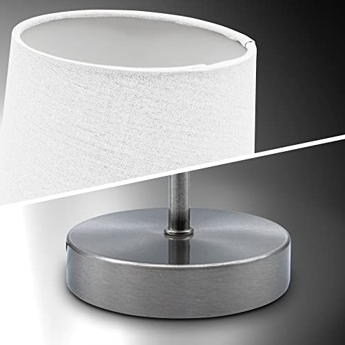 B.K.Licht Lampada da comodino, Lampada da tavolo con paralume in tessuto bianco, adatta per lampadina E14 non inclusa max 25W, altezza 30.8cm, abat-jour per camera con interruttore sul filo, IP20