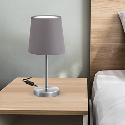 B.K.Licht Lampada da comodino, Lampada da tavolo con paralume in tessuto grigio, adatta per lampadina E14 non inclusa max 25W, altezza 30.8cm, abat-jour per camera con interruttore sul filo, IP20
