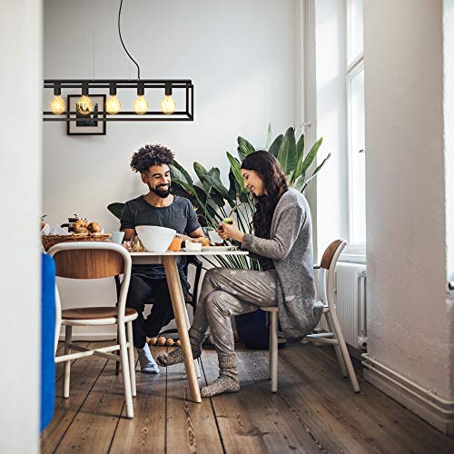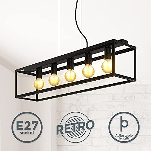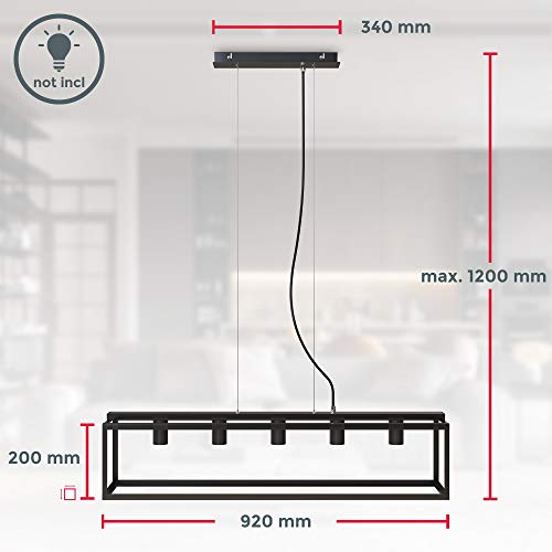 B.K.Licht Lampada a sospensione con 5 punti luce, attacco per lampadine E27 non incluse, Lampadario da soffitto regolabile in altezza a parallelepipedo in metallo nero opaco per cucina, 92x20x120cm