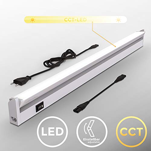 B.K.Licht Lampada sottopensile cucina LED, Luca bianca naturale o calda, LED integrati 8W, Lunga 55.7 cm, luce orientabile, interruttore on off, plastica argento, collegabile a lampade uguali, IP20