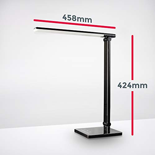 B.K.Licht Lampada da tavolo LED touch, lampada da scrivania dimmerabile su più livelli, luce calda, neutra o fredda, porta USB per ricaricare lo smartphone, da comodino, plastica nera, 230V, 500Lm