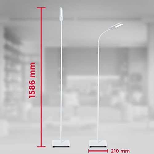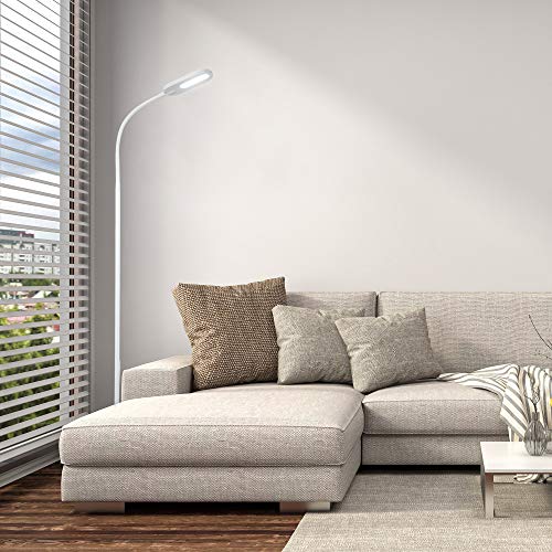 B.K.Licht Lampada da terra LED, piantana dimmerabile su 4 livelli, luce calda neutra o fredda, altezza d'uso 1,28m, LED integrati 8W, 600Lm, orientabile, lampada a stelo touch moderna, bianca IP20