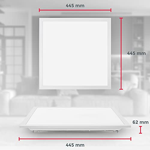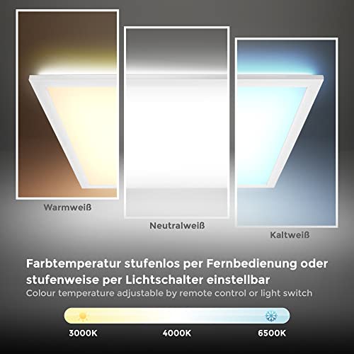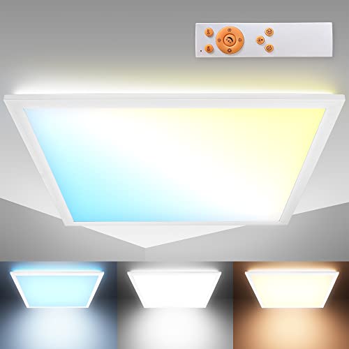 B.K.Licht Pannello LED dimmerabile con telecomando, 24W, luce calda, neutra, fredda, 445x445x62 mm, lampada da soffitto con illuminazione indiretta