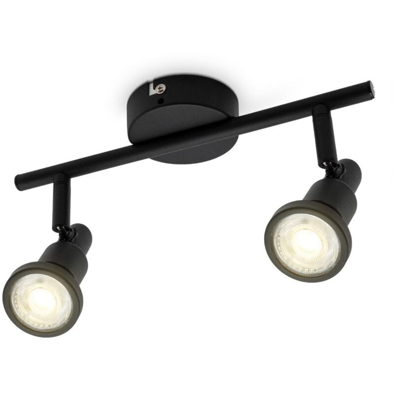 B.K.Licht LED Plafoniera Bagno Lampada da soffitto Lampada da soffitto Spot da soffitto incl. 2 lampadine da 5W ciascuna 400lm IP44 Elegante lampada da soffitto in nero, che migliora visibilmente i soggiorni con il suo design moderno. La classe di protezione IP44 promette la protezione dagli spruzzi d'acqua e può quindi essere utilizzata anche come lampada da bagno. Le lampadine da 5W (GU10) incluse promettono un piacere duraturo con una vita utile di 20.000 ore. Le lampadine sono facili da cambiare e irradiano 400 lumen ciascuna. I due faretti girevoli e orientabili permettono un'illuminazione individuale del vostro bagno in un colore di luce bianca calda (3000 Kelvin). 1 lampada da bagno a LED con due faretti girevoli e orientabili, IP44, 275x123 (LxH) Questo prodotto è un prodotto ambientale. I prodotti per ambienti sono apparecchi che possono essere smontati per un'ispezione separata della/e sorgente/i di luce contenuta/e Dati tecnici dell'apparecchio: 2 lampade Metallo Sabbiato