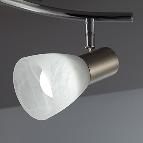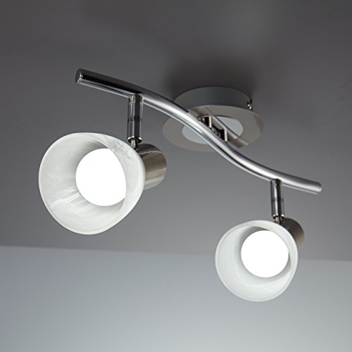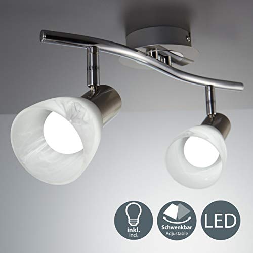 B.K.Licht Plafoniera LED con 2 faretti orientabili, include 2 lampadine da 5W E14, lampada da soffitto per soggiorno, sala o camera da letto, metallo color nickel opaco e vetro, 230V, IP20