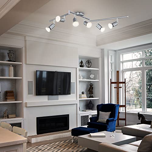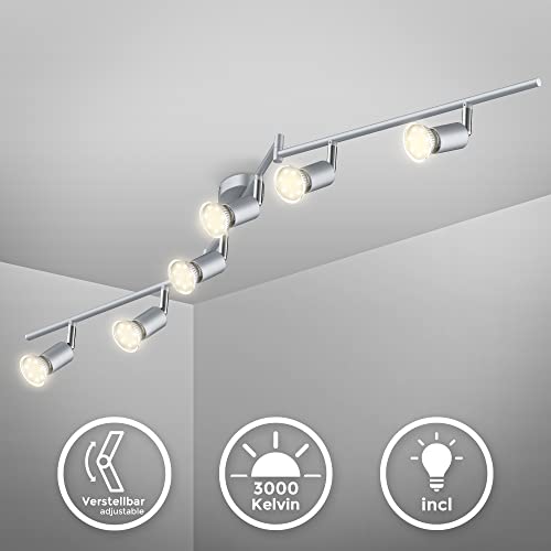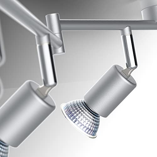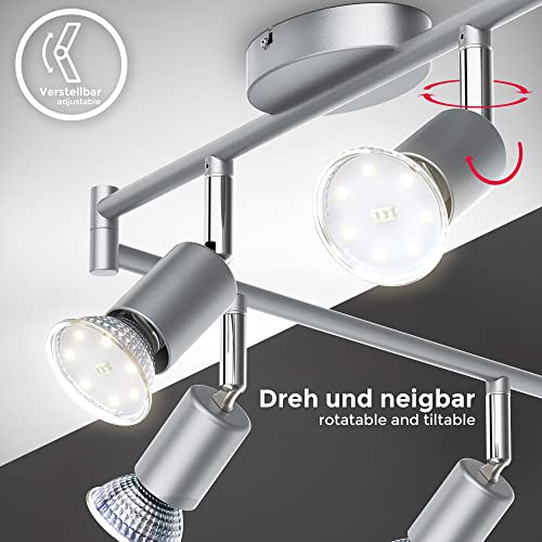 B.K.Licht Plafoniera con faretti LED da soffitto orientabili, luce calda, include 6 lampadine GU10 da 3W, lampada moderna da soffitto per cucina, salotto, metallo color argento-titanio