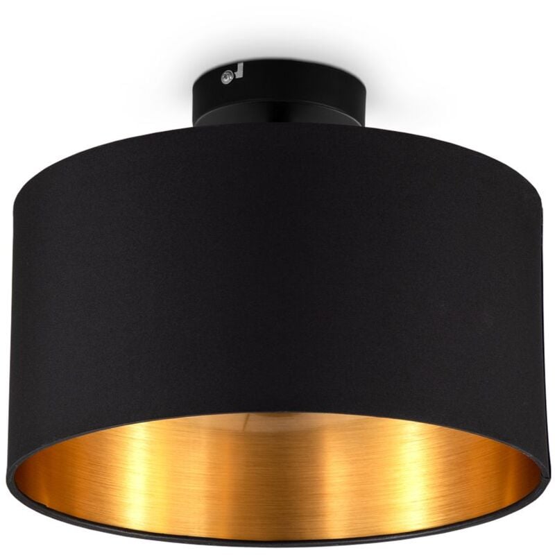 B.K.Licht I Lampada da soffitto in tessuto I 30 cm I Nero-Oro I Lampada da soffitto a 1 luce I E27 I Lampada da soffitto senza lampadine Questa lampada da soffitto tessile rotonda a 1 lampada in nero-oro offre una grande illuminazione con un design elegante. La lampada in tessuto retrò ha un attacco E27 per lampadine con un massimo di 60 watt. Una lampadina non è inclusa nella consegna. Si raccomanda l'uso di una lampadina a LED a risparmio energetico. La plafoniera decorativa e di tendenza in tessuto ha un diametro di 300 mm e una lunghezza totale di 240 mm. Il paralume in tessuto ha un'altezza di 160 mm. Il baldacchino in metallo in nero opaco copre la vostra connessione elettrica esistente fino a un diametro di 100 mm. Oltre alla lampada da soggiorno vintage, la fornitura comprende 1 staffa di montaggio, 2 tasselli e 2 viti, nonché le relative istruzioni di montaggio. I fori di montaggio sono a 7,5 cm di distanza. La lampada da soffitto è un eye-catcher nella vostra casa Dati