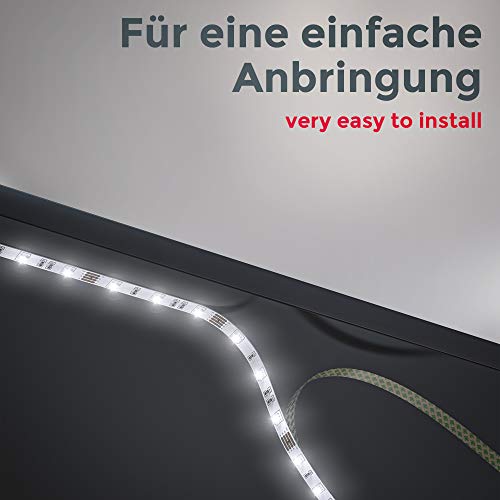 B.K.Licht Striscia LED 3m, cambio colori RGB con telecomando, dimmerabile, adesiva, accorciabile, nastro luminoso LED, alimentatore spina europea, bianca, per interni IP20