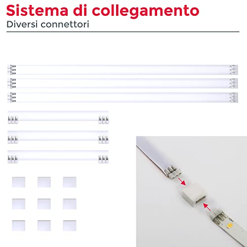 B.K.Licht Striscia LED 2m, set di 4 pezzi da 50cm, Luce bianca naturale 4000k, Include connettori, interruttore e spina europea, uso interno, Accorciabili, Adesive, per soggiorno cucina camera, IP20