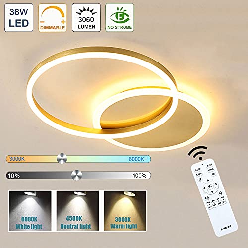 Lichtsse Lampadario LED Moderno con 3 Colori, Dimmerabile Plafoniera a LED con Funzione di Memoria, 36W 3060lm Anello Lampadari Soffitto con Telecomando per Bambini in Camera Ufficio, 3000K-6000K