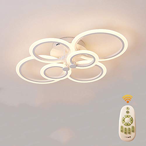 Lichtsse Plafoniera moderna a LED dimmerabile, 74W 5180LM lampada da soffitto design ad anello con telecomando, Bianco lampada da soffitto in metallo acrilico soggiorno cucina Luce di soffitto, 6-ring