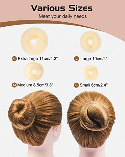 Ciambella per capelli: Queste ciambelle per capelli rendono facile e veloce la creazione di bellissimi chignon. Con 4 diverse misure (extra-large, grande, media e piccola), sono adatte sia ai capelli spessi che a quelli sottili. Il loro design semplice ma efficace li rende incredibilmente facili da usare, consentendo di ottenere risultati straordinari in pochi minuti.