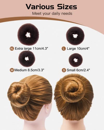 Ciambella per capelli: Queste ciambelle per capelli rendono facile e veloce la creazione di bellissimi chignon. Con 4 diverse misure (extra-large, grande, media e piccola), sono adatte sia ai capelli spessi che a quelli sottili. Il loro design semplice ma efficace li rende incredibilmente facili da usare, consentendo di ottenere risultati straordinari in pochi minuti.