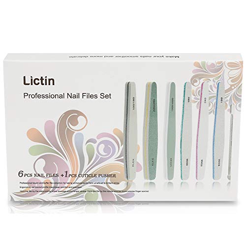 Lictin 6 × Lime per Unghie Professionali, 6 Pcs Lima Unghie + 1 Pcs Morta Pelle Strumento,Lavabile a Doppia Faccia 150, 180, 240, 100/180, 220/280, 1000/4000 Grit