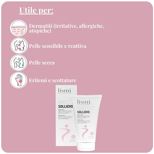 LIDERM SOLLIEVO - Crema lenitiva con formulazione di ispirazione dermatologica per calmare e provenire le irritazione come dermatiti (irritative, allergiche, atopiche), pelle sensibile e reattiva, pelle secca, pelle trattata (laser, pelling), ed eritemi e scottature