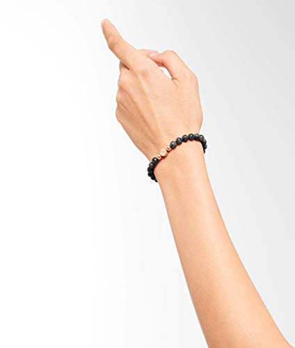 Questo moderno braccialetto dell'amore Berlino, composto da perline di quarzo grigio da 6 mm e un logo in acciaio inox placcato oro rosa, è un gioiello e un talismano allo stesso tempo.