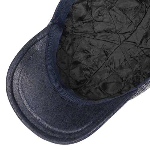 LIERYS Cappellino Patchwork Wool Curved Uomo - Made in Italy Lana Berretto Baseball Fibbia Metallo, con Visiera, Fodera Autunno/Inverno - S/M (55-57 cm) Blu
