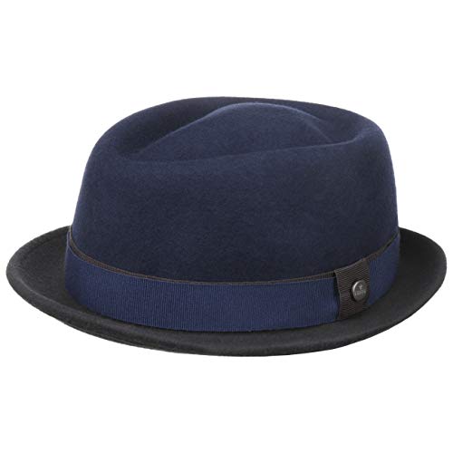 LIERYS Cappello Vanello Wool Twotone Pork Pie Donna/Uomo - Made in Italy di Feltro con Nastro Grosgrain Autunno/Inverno - XL (60-61 cm) Blu-Grigio
