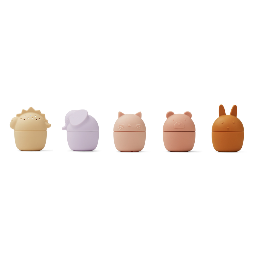 Dettagli del prodotto: Giocattolo da bagno in confezione da 5 A forma di dinosauro, elefante, gatto, orso e coniglio Facile da tenere e afferrare Facile da pulire Materiale e cura: Materiale: 100% silicone Pulire con un panno umido e sapone delicato