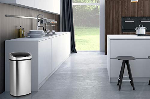 LIFA LIVING Bidone Spazzatura con Apertura Automatica, Contenitore rifiuti in Acciaio Inox, Pattumiera da 38 L