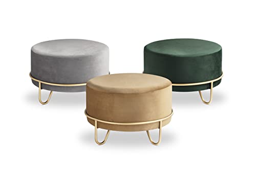 Il comodo pouf poggiapiedi di Lifa Living è disponibile in tre colori: ocra, grigio e verde. Di forma rotonda, il cuscino del pouf dal design moderno è realizzato in velluto. I quattro piedi che lo sostengono sono invece realizzati in robusto metallo dorato.