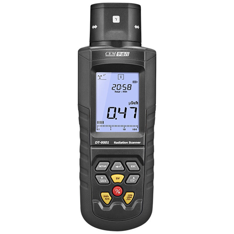 Specifiche: Materiale: ABS Display: LCD grande a 4 cifre Tipo di raggio: α, β, γ e raggi X Memorizzazione dati: 4000 gruppi Sensore: rilevatore di compensazione alogeno (tubo contatore Geiger GM) Porta di uscita: BT wireless trasmissione (la distanza di trasmissione spaziale è di 10 m) Funzione di allarme: valore di allarme regolabile (l'impostazione predefinita è 5μSv/hr) Valore di radiazione normale dell'ambiente naturale