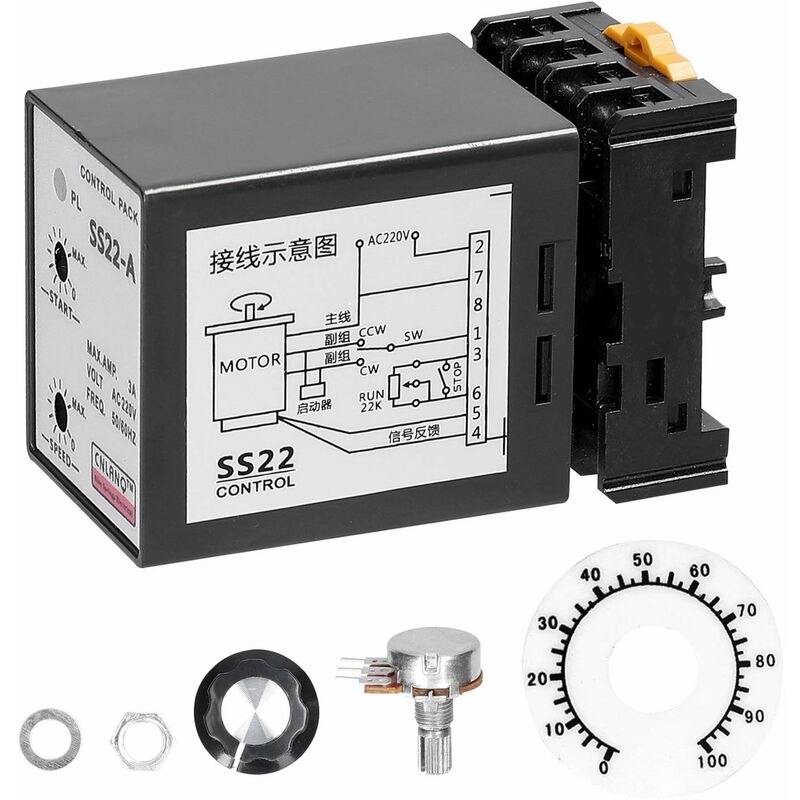 Questo è un tipo di regolatore di velocità di qualità, che adotta un alloggiamento ignifugo in ABS, resistenza all'usura e può fornire lunghi tempi di servizio. Dimensioni ridotte, alta precisione, con ampio campo di regolazione della velocità e basso consumo energetico. Design della manopola di rotazione antiscivolo per regolare facilmente la velocità di lavoro. Ampiamente usato in imballaggi, stampa, cibo, elettronica, strumenti, linee di produzione dell'industria dell'abbigliamento per dispositivi di azionamento della velocità. Puoi provare. Specifiche: Nome: Regolatore di velocità Modello: SS22-A Materiale: ABS AMP.max.: 3A Tensione: AC220V Frequenza: 50/60 Hz Dimensioni articolo: 80 * 56 * 41 mm / 3,15 * 2,20 * 1,61 pollici Peso articolo: 99 g / 3,49 once Dimensioni confezione: 92 * 89 * 50 mm / 3,62 * 3,50 * 1,97 pollici Peso confezione: 113 g / 3,99 once Lista di imballaggio: 1 * Regolatore di velocità