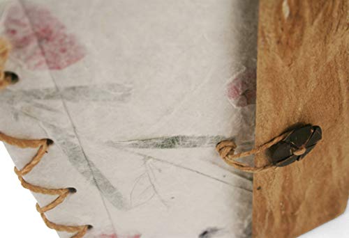 Splendidamente decorato con petali e fogli secche di Bougainville, impressi su carta realizzata a mano e arricchita da una banda di corteccia.
