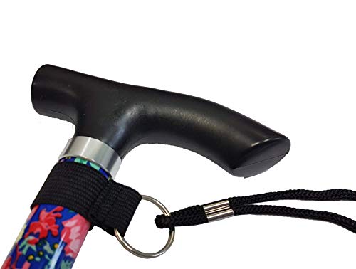 Life Healthcare - Bastone da passeggio da donna, per anziani o disabili, regolabile in altezza, motivo floreale blu, con punta in gomma antiscivolo, cinturino da polso leggero