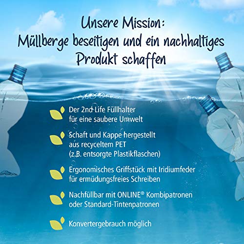2nd LIFE ONLINE 54200/3D - Penna stilografica in PET riciclato per un ambiente pulito, per cartucce di inchiostro standard, inclusa 1 cartuccia combinata