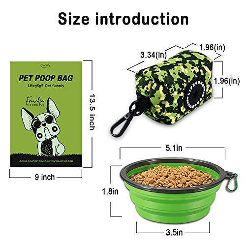 Lifegogo Sacchetti Per Cani,Sacchetti per Bisogni dei Ccani con Dispenser e Ciotole Piegabile per Cani,Extra Spessi,Forti e 100% Prova di Perdite Sacchetti di Cacca di Cane-120 unità