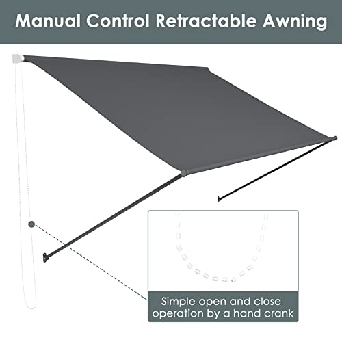 【MATERIALE DI ALTA QUALITÀ】 Questa parte della staffa della tenda da sole retrattile è realizzata in ferro e alluminio, la parte in tessuto è in poliestere. E ha un rivestimento in PU impermeabile. Stabile e resistente ai raggi UV.
