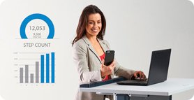 Panoramica grafica di passi, distanza, calorie e intensità, integrazione di Apple Health e Google Fit, integrazione di Facebook e Twitter.