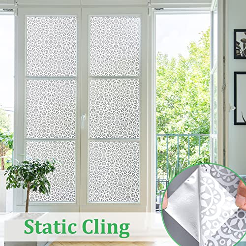 Lifetree Pellicola per finestre in vetro con motivo privacy per finestre in vetro con pizzo decorativo opaco statico aggrappato pellicola autoadesiva per finestre per casa ufficio 90 x 600 cm