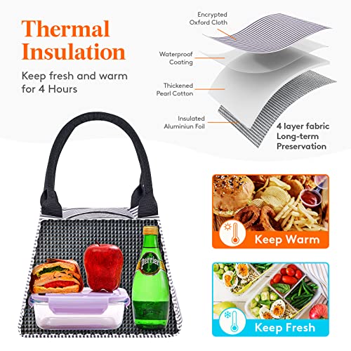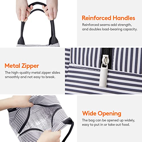 Lifewit Borsa Porta Pranzo per Donna e Uomo Medium, Borsa Termica per Pranzo, Borsa Frigo Riutilizzabile per Preparazione Pasti, Lavoro, Scuola, Viaggi, Strisce bianco-nere