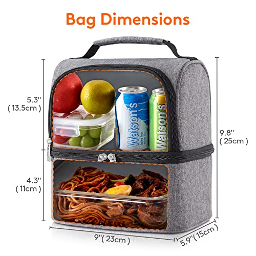 Lifewit Borsa Termica Manutenzione di Freddo e Caldo Porta Pranzo Cibo Alimentazione Lunch Box da 7Litri per Campeggio Lavoro Scuola con Doppia Sezione, Grigio