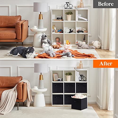 Lifewit contenitori portaoggetti pieghevoli a forma di cubo Scatole decorative in tessuto con maniglie per l'organizzazione della casa per scaffali, armadio, kallax, set di 6, Nero, Medio