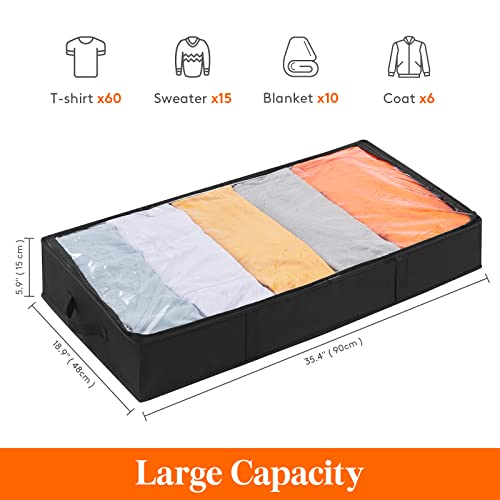 Lifewit 2 Pezzi Contenitori Sottoletto, Contenitore Sottoletto per Coperte Grande capacità con Maniglia Rinforzata, Scatole per Vestiti, Piumoni, Lenzuola per Camera da Letto, Armadio, 65L, Nero