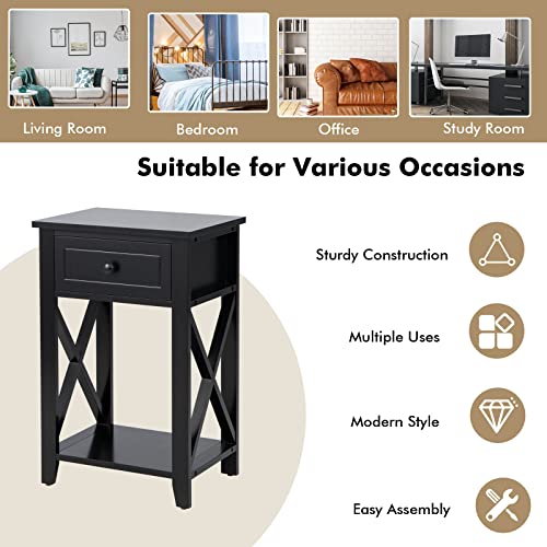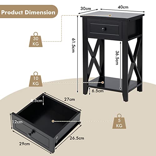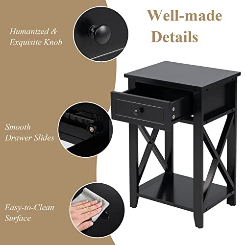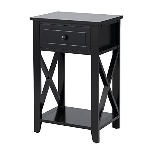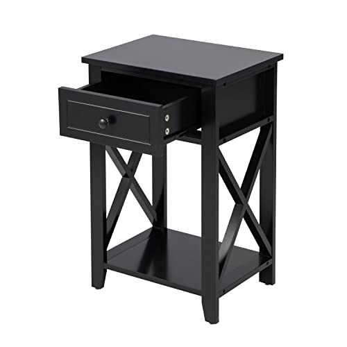 LIFEZEAL Comodino con Cassetto, Comodino Moderno, Piccolo, Mobiletto Camera da Letto, Comò in Legno, Tavolino Basso, Sbarre Rinforzate X, per Soggiorno, Salotto, Max 45 kg, 40x30x61,5 cm (nero)