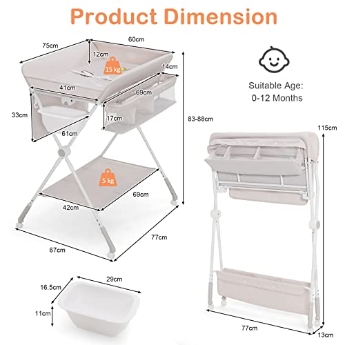 LIFEZEAL Fasciatoio 3 in 1, Fasciatoio Pieghevole e Regolabile in Tessuto Oxford e PP, Vasca da Bagno e Stendibiancheria, Robusta Struttura in Tubo di Ferro, Capacità di Carico 15 kg e 5 kg (Beige)