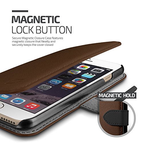 Lific URCOVER Custodia Richiudibile Saffiano Diary per Apple iPhone 6 6s Plus | Cover Protezione Completa in Eco Pelle Ultra Slim Marrone/Nero | Flip Case Chiusura Elegante