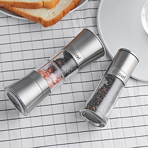 Liflicon Macina Sale Pepe 2 in 1 Acciaio e Acrilico, Doppio Macinino Spezie Dual Manuale Regolabile in Ceramica