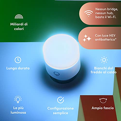 LIFX Clean A60 1200 lumen [E27], Tutti i colori con luce HEV antibatterica, Lampadina LED Wi-Fi Smart, Non necessita di alcun ponte, Compatibile con Alexa, Hey Google, HomeKit e Siri