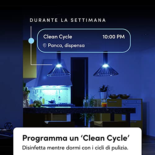 Con modalità HEV: al contrario dei raggi UV, i LED visibili ad alta energia (HEV) uccidono i batteri ma sono innocui per la pelle o gli animali domestici.