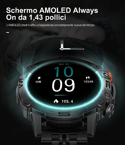 【Schermo AMOLED tattile e vivido】 L'orologio connesso LIGE per uomini è dotato di un modernissimo schermo tattile AMOLED da 1,43 pollici, che offre un'esperienza visiva massima. Con colori vivaci e un display cristallino, immergetevi in un mondo coinvolgente. Che si tratti di visualizzare le notifiche, monitorare la vostra forma fisica o effettuare chiamate telefoniche, questo smartwatch promette un'esperienza utente fluida e coinvolgente.