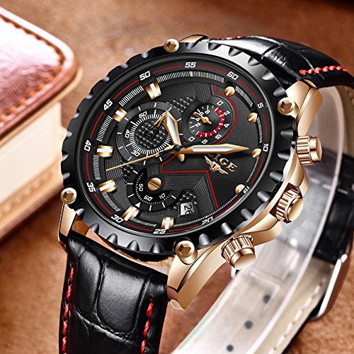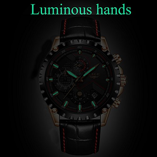 LIGE Orologio uomo Impermeabile Cronografo Sport Quarzo Analogico Orologio da Polso Pelle Nera Casual Orologio