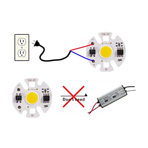 LIGHBIB 2Pcs 3W 5W 7W 10W 12W COB LED Chip Light 220V Chip Lampada Per Faretto Proiettore Nessun Driver Necessario Accessori Per Illuminazione Fai Da Te Bianco Caldo,Bianco,AC220V 3W