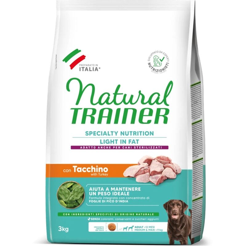 Alimento secco, completo e bilanciato, per cani adulti di taglia media e grande che tendono al sovrappeso. Contiene il 36% di grassi in meno rispetto alla normale linea di alimenti secchi Trainer Natu ... Alimento secco, completo e bilanciato, per cani adulti di taglia media e grande che tendono al sovrappeso. Contiene il 36% di grassi in meno rispetto alla normale linea di alimenti secchi Trainer Natural Medium e la sua ricetta ipocalorica aiuta il tuo amico di zampa a mantenere il peso ideale. Trainer Natural Light in Fat è preparato con carne bianca fresca e contiene importanti micronutrienti, come vitamine e minerali, che supportano al meglio la vitalità del tuo cane.Per favorire un senso di sazietà duraturo sono stati utilizzati componenti funzionali, come fibre vegetali e semola di frumento. Queste crocchette per cani sono arricchite con componenti funzionali, come semi di lino e alghe, fonti di acidi grassi Omega 3, la cui azione congiunta a magnesio e peptidi del collagene